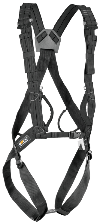Komplettgurt. Voll verstellbarer Auffanggurt mit einem Anschlagpunkt im Brust- und einem im Schulterbereich. Der Gurt kann dank der Schnellverstellschnallen rasch und bequem dem Träger angepasst werden. Der Gurt ist kompakt und leicht. Aufgrund fehlender Polsterungen ist er nicht für längeres Hängen in der Vertikalen geeignet. Vor allem Personen mit starkem Übergewicht sollten mit Komplettgurten ausgerüstet werden, da bei ihnen eine erhöhte Gefahr besteht, nach hinten überzukippen.