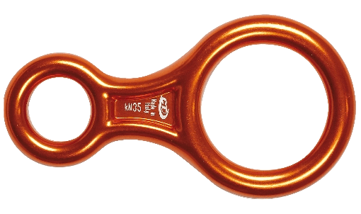 Großer Abseilachter. Er ist 146 mm lang und 76 mm breit.