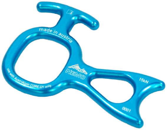 Die einwandfreie Funktion ist nur mit einem AustriAlpin Core.Dy 6 mm Reepschnur (Seil) sowie mit einem Karabiner mit Verschlußsicherung gegeben.
