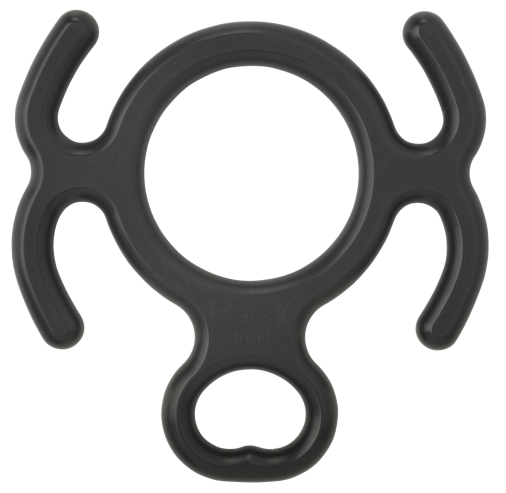 Ein speziell geformter Abseilachter, speziell fürs Canyoning und Seilbergungen entwickelt. Die "Ohren" lassen eine Vielzahl von unterschiedlichen Varianten zu das Seil einfach oder doppelt einzulegen und jeweils zu blockieren. Die Blockierung kann in allen Fällen sehr einfach gelöst werden. Die Reibung kann jederzeit entsprechend der Situation angepasst werden. Es ermöglicht auch das Seil ein- und auszulegen ohne den Karabiner öffnen zu müssen. Hartbeschichtet. Farbe: schwarz.