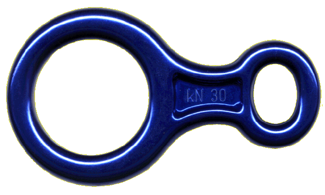 Klassischer Abseilachter. Er ist 132 mm lang und 74 mm breit. Bruchlast: 30 KN. Gewicht: 105 g. Farbig eloxiert.