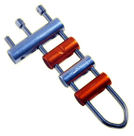 Ein 4-Stege Rack mit gerader Einhängeöse. Die Stege sind aus abriebfestem Vollaluminium und der Körper aus Stahl. Das Besondere an diesem Abseilgerät ist der oberste Steg. Über diesen kann man das Seil legen und die Bremswirkung erhöhen und man kann ihn auch zum Blockieren verwenden. Durch eine Veränderung des Abstandes der Stege untereinander kann die Reibung verändert werden (eng = langsam). Diese Eigenschaft ermöglicht ein sehr gleichmäßiges Abseilen. Es ist hervorragend für lange Schächte geeignet. Für Einfach- und Doppelseil von 9 bis 13 mm geeignet.