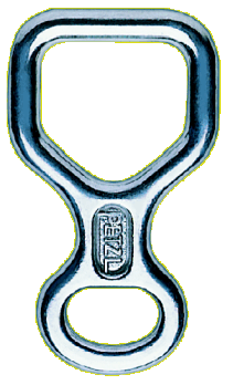 Eckiger Abseilachter, der das Risiko des Hochrutschen des Seiles unter Bildung eines Ankerstiches verringert.