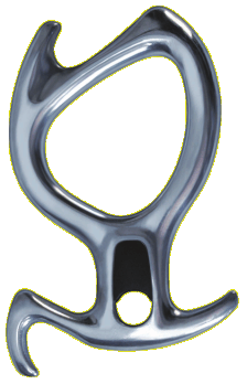 Spezieller Achter fürs Canyoning. Für Einfachseilnutzung gedacht. Die Öffnung für den Karabiner passt genau auf dessen Durchmesser. Die "Nasen" erlauben unterschiedliche Reibungsstufen und ein Blockieren.