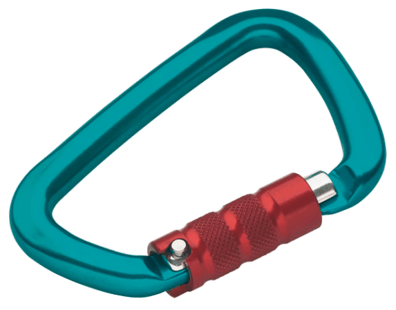 Triplelock-Karabiner mit Key-Lock-Verschluß. Der Triplelock-Verschluß wird zum Öffnen angehoben und gedreht. Lässt man den Schnapper los, verriegelt er automatisch.