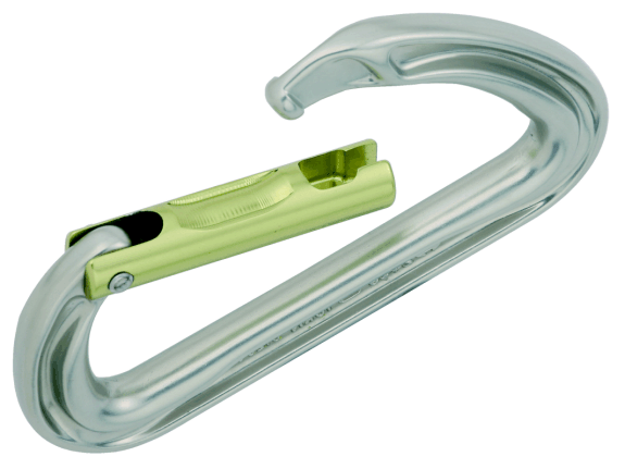 Heißgeschmiedeter Aluminiumkarabiner mit Key-Lock-Verschluß. Körper silber mit geradem eloxierten Schnapper.