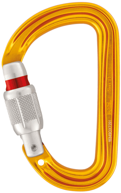 Petzl Aluminiumkarabiner mit Key-Lock-Schraubverschluss in D-Form.