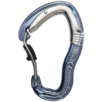 Wiregate-Karabiner mit innovativer, automatischer Verschlußsicherung. Der Karabiner ist während des Kletterns oder bei Standarbeiten sicher verschlossen. Sehr gut für die Selbstsicherung geeignet.