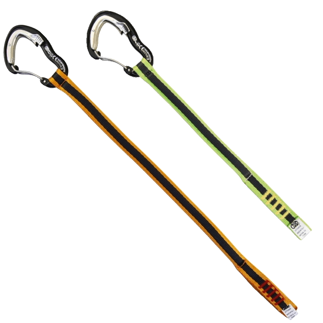 Diese Schlinge bietet eine 30 cm bzw. 45 cm Verlängerung, um in unsicheren Positionen weit entfernte Haken zu clippen. Das Gurtband hat innen einen flexiblen Stab, mit dem eine gewünschte Biegung gehalten werden kann. Der Spezialkarabiner ein verändertes Ergo Wire Verbindungsstück hält den Schnapper offen bis dieser mit dem Bohrhaken in Berührung kommt. Dann gibt der Mechanismus den Schnapper frei und das Verbindungsstück schließt automatisch.