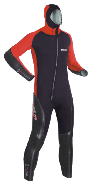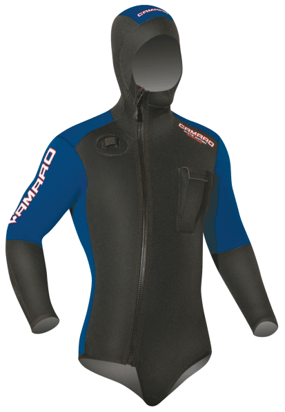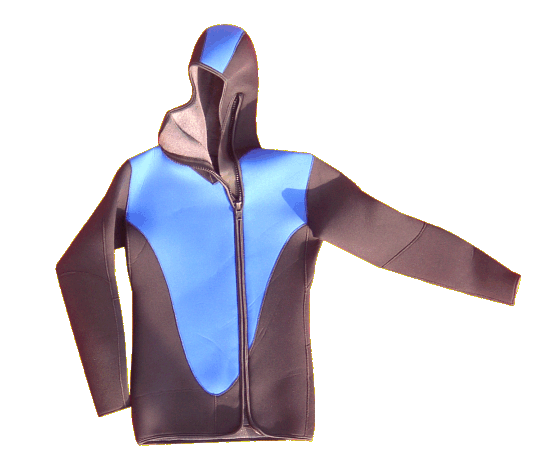 Neoprenjacke aus 4 mm nylonbeschichtetem Neopren mit angesetzter Kopfhaube. Zum Anlegen steigt man mit einem Fuß in die Jacke ein und...